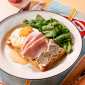 Стриплойн с рагу из лука порей, аджика из абрикосов